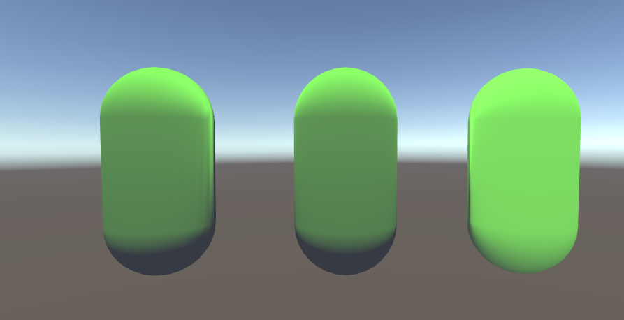 对比一下效果图,左一是逐顶点漫反射光照,中间是逐像素漫反射光照,最右边是半兰伯特光照模型